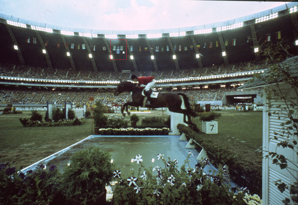 À la dernière compétition de sports équestres au Stade, un drapeau du Québec est mystérieusement apparu accroché au toit, aux côtés de ceux des autres pays. Il est resté en place jusqu’à la cérémonie de clôture, sans autorisation officielle. On soupçonne un groupe souverainiste d’avoir réussi l’exploit, mais personne n’a jamais confirmé en être responsable.