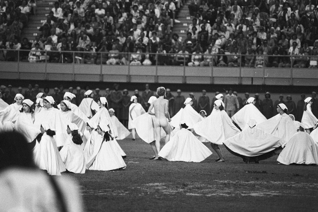 Lors de la cérémonie de clôture, un homme nu a surgi parmi les 500 danseuses. L’incident a provoqué la stupéfaction générale et est devenu l’une des anecdotes les plus connues des Jeux.