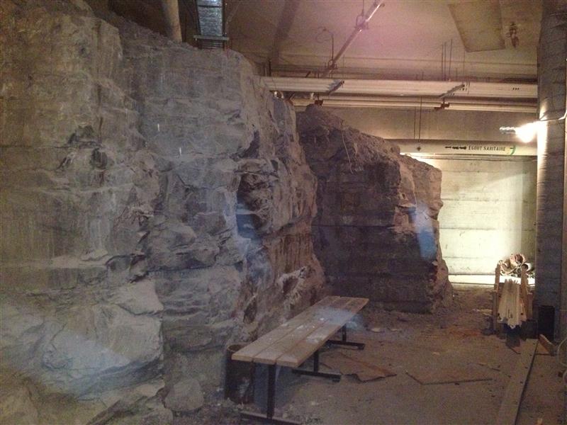 Lors des travaux d’excavation commencés en 1973, plus de deux millions de mètres cubes d’argile et de calcaire ont été extraits du site pour permettre la construction du Stade. Toutefois, dans un vestiaire des athlètes sous les piscines olympiques, on n’a pas cru bon dynamiter une partie du sol. La Roche a donc été laissée en place dans les vestiaires, défiant les plans des ingénieurs et devenant un témoin du sol sur lequel furent construites les installations olympiques.