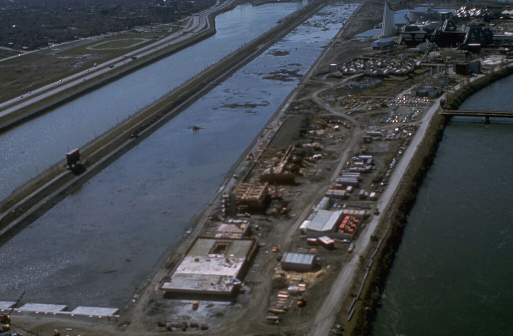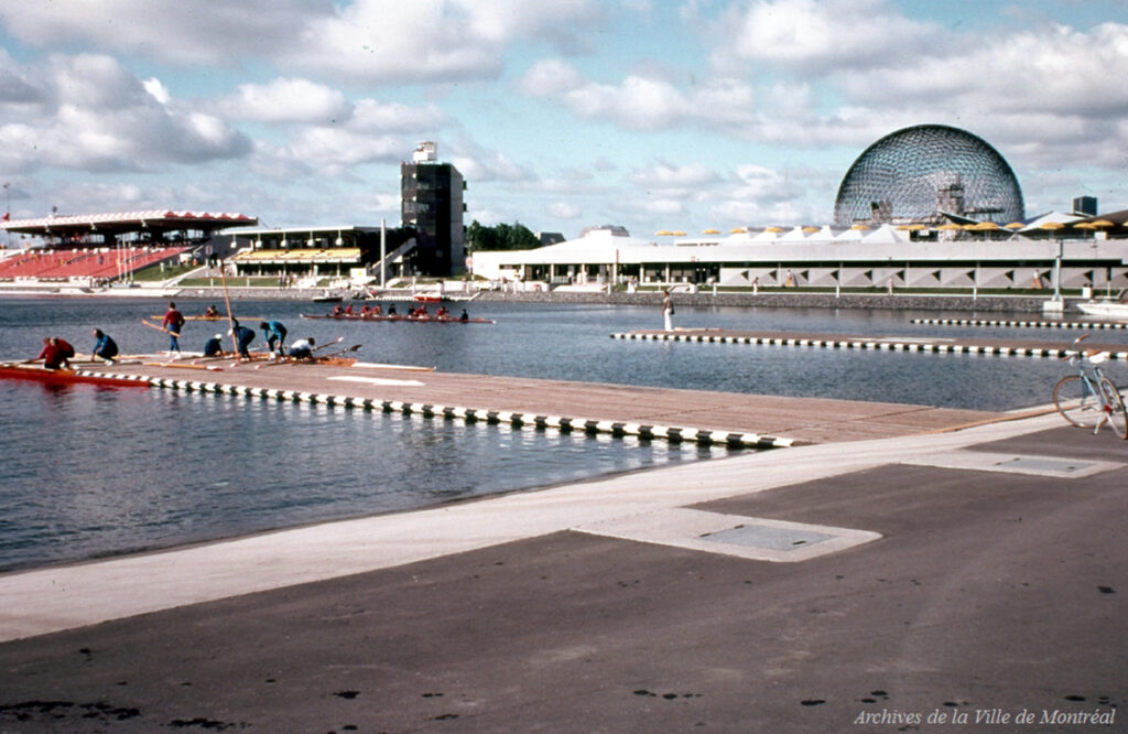L’aménagement du Bassin olympique, situé sur l’île Notre-Dame au parc Jean-Drapeau, s’est imposé comme l’un des grands défis des Jeux. Les travaux de construction ont nécessité d’importants remblais et des installations techniques de pointe pour l’époque : tours de départ et d’arrivée, voies balisées et gradins temporaires pour des milliers de spectateurs.