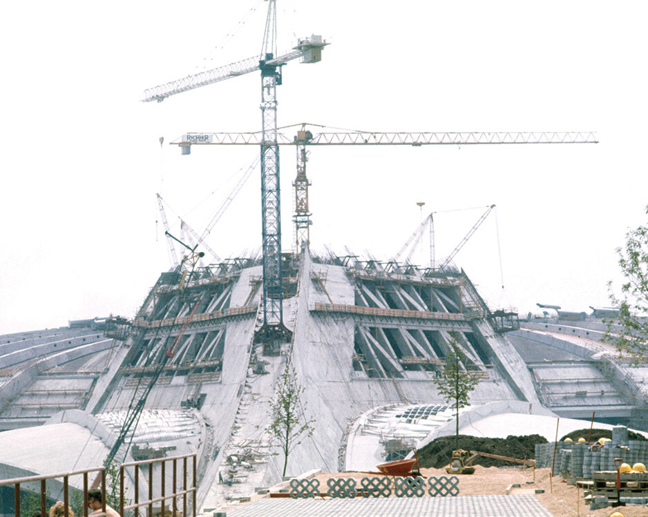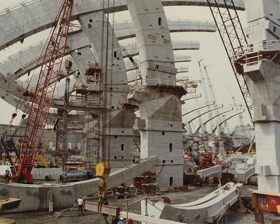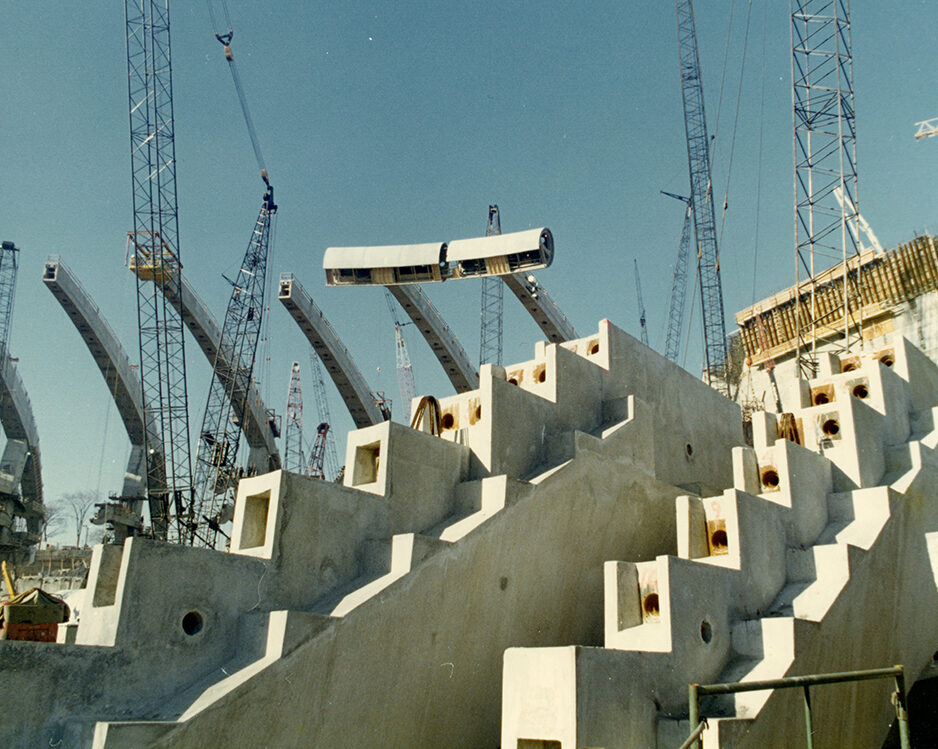 Le Stade compte 12 000 éléments de béton façonnés, ajustés et assemblés avec une précision remarquable. Il s’articule autour de 34 consoles et de quatre demi-consoles encastrées dans la Tour, formant son squelette principal. Voici quelques moments marquants de sa construction :
