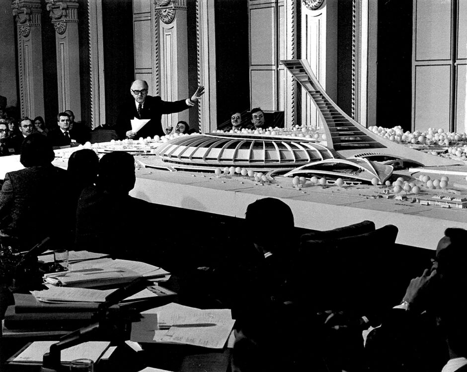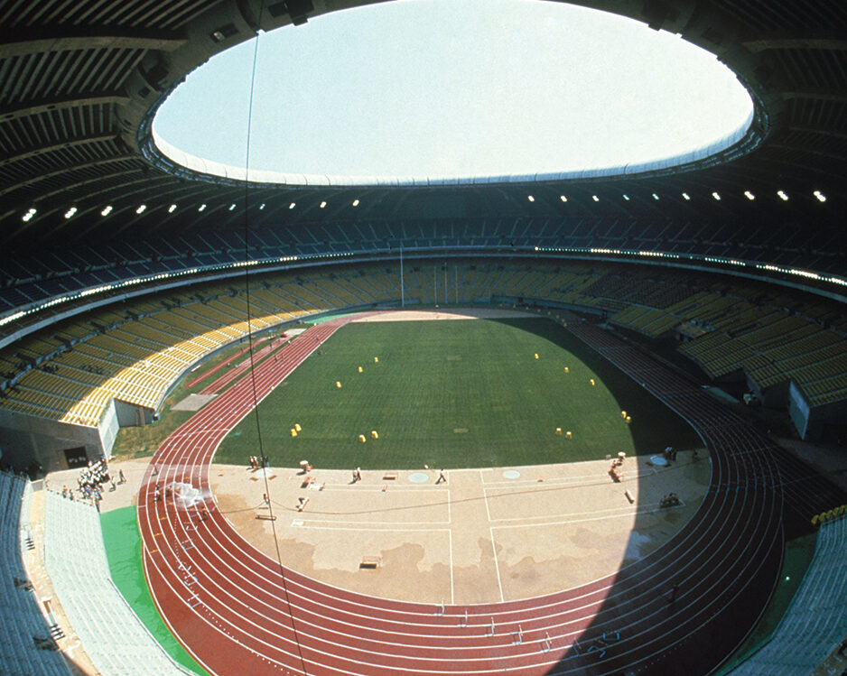 Conçu par l’architecte français Roger Taillibert, le Stade présente des formes audacieuses, recourbées et futuristes. Son architecture unique a complexifié sa construction, mobilisant plus de 10 000 travailleurs jour et nuit.
