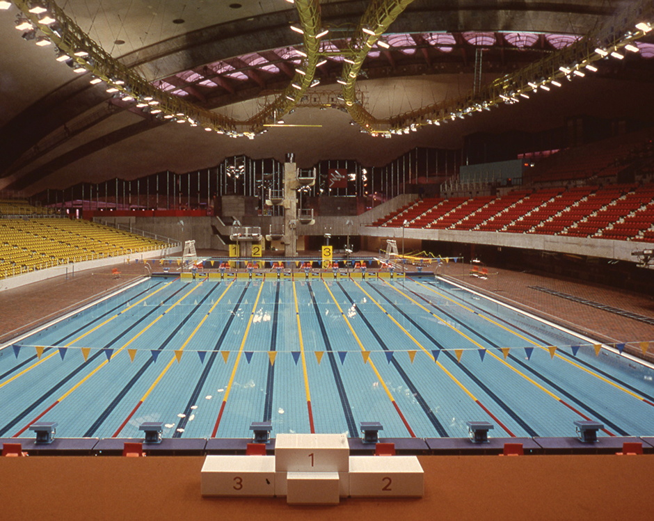 Les travaux d’excavation débutent le 28 avril 1973 et le bétonnage du Centre sportif se termine le 15 avril 1976. Ce lieu accueille toutes les épreuves aquatiques : 26 épreuves de natation dans le bassin de compétition, quatre épreuves de plongeon et 47 matchs de water-polo. Un bassin d’entraînement de 50 m à cinq couloirs, situé sous les gradins, permettait aux athlètes de se préparer. Aujourd’hui encore, le Centre sportif est l’un des lieux les plus fréquentés du Parc olympique.