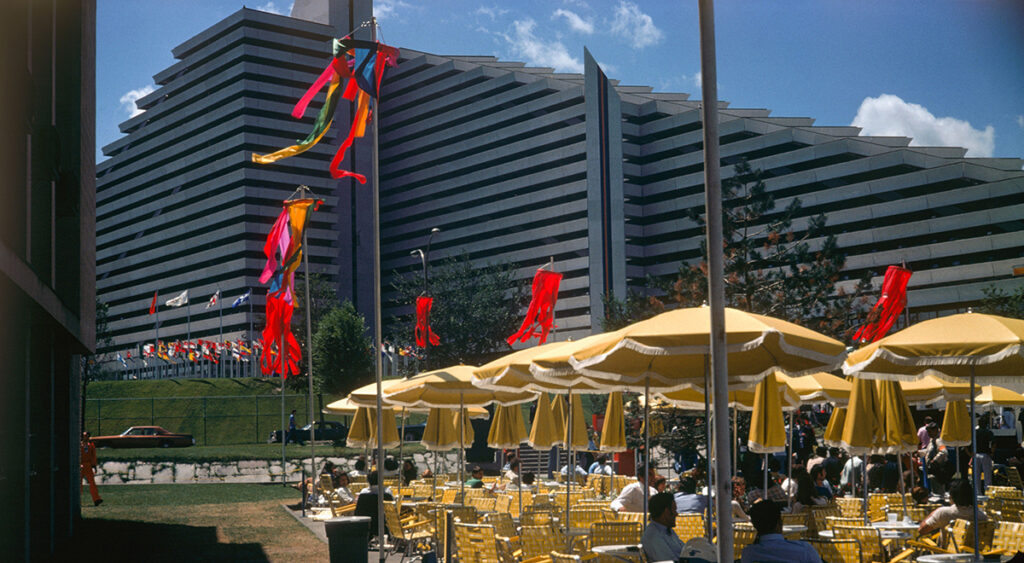 Le Village olympique est formé de deux immeubles pyramidaux de 19 étages chacun. On y trouvait 980 appartements entourés de terrasses, destinés à loger l’ensemble des délégations, à l’exception des athlètes des compétitions équestres et de yachting.