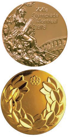 Le design des médailles de tous les Jeux olympiques d’été est soumis à une standardisation exigée par le Comité international olympique. Ainsi, tel que spécifié, l’avers de la médaille arbore un dessin de Giuseppe Cassioli représentant la Victoire, la Fraternité et l’Universalité. L’artiste italien réalisa ce design pour les Jeux d’Amsterdam de 1928. Le revers, dont le design est laissé au choix du comité d’organisation, est ici dépouillé. Une couronne de laurier, symbole des Jeux de l’Antiquité, ainsi que l’emblème des Jeux de Montréal y sont représentés.